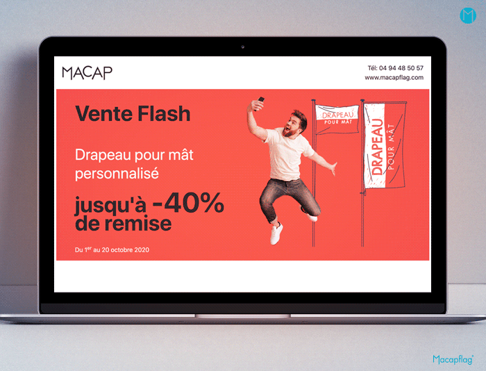 Le drapeau personnalisé pour mât actuellement en vente flash sur le site Macap à -40%