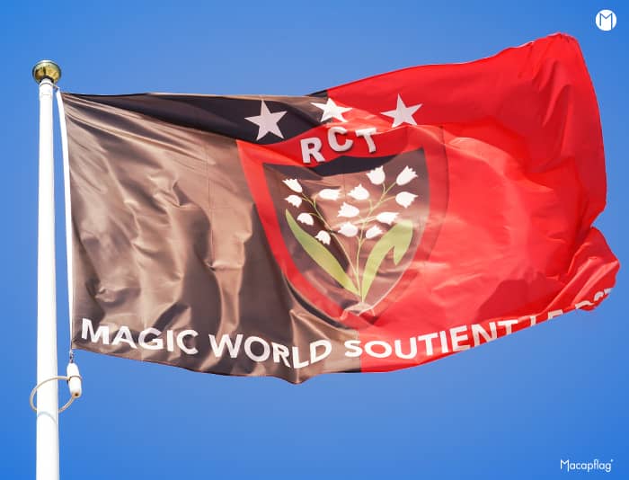 Chaque équipe a son logo, son identité visuelle, son blason qu’elle fait imprimer sur de nombreux supports dont le drapeau. Cette personnalisation lui permet ainsi d’afficher ses couleurs en toutes occasions.