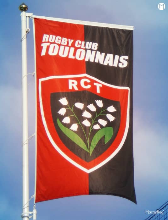 Certains supporters choisissent aussi d’acheter un drapeau pour mât de forme horizontale. Cousu d’un ourlet et doté d’une sangle de renfort sur le côté latéral gauche, le drapeau n’a forcément pas de hampe puisque sa vocation initiale est d’être fixé sur un mât. Il permet alors d’être plié pour se glisser dans un sac sans prendre trop de place.
