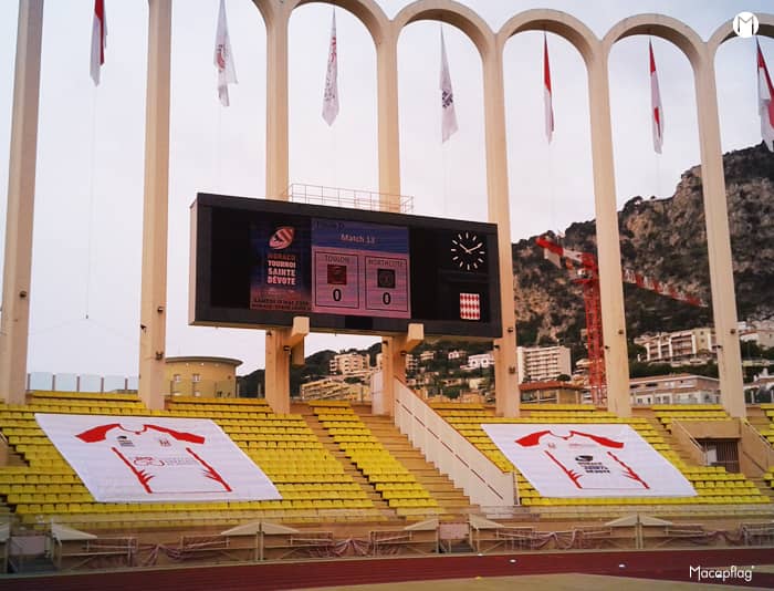 Dans de nombreux stades, des mâts à drapeaux ont été installés autour du terrain. D’une grande hauteur, ils sont visibles aussi bien à longue distance que depuis l’enceinte du stade.