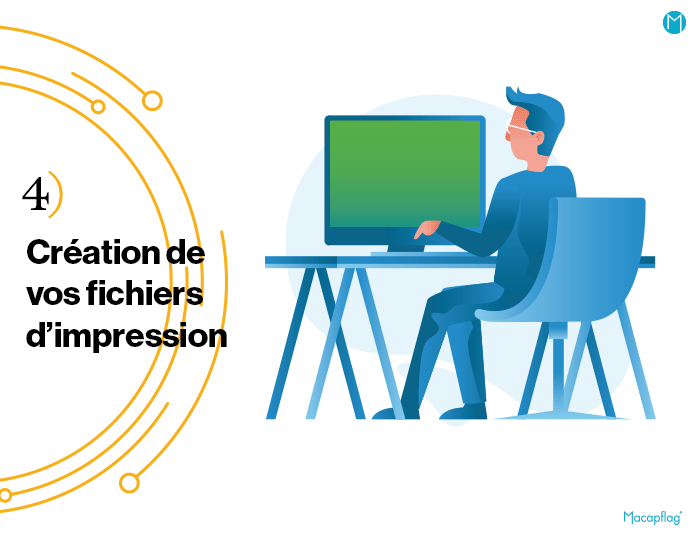 Chez Macap, 2 infographistes vous accompagnent dans la création de vos fichiers. Nous vous fournissons des gabarits adaptés spécialement conçus pour nos modèles. Nous pouvons également vous proposer des templates qui facilitent et guident le travail de création.