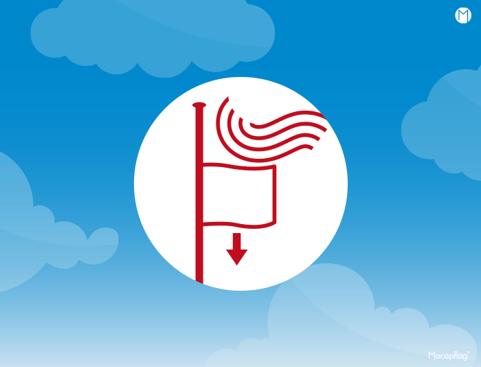 Si le vent souffle à une vitesse supérieure à 60 km/h soit force 7, le drapeau doit être baissé pour éviter qu’il ne se dégrade.