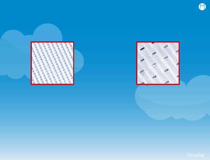 . La maille Air est un textile ajouré micro perforé conçu pour résister au vent et aux intempéries. Votre drapeau en maille Air durera plus longtemps dans le temps que celui en maille Classic.