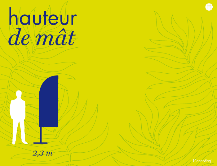 Si les oriflammes publicitaires sont proposés dans plusieurs tailles, l’oriflamme classique est celui qui monte le plus haut ! Dans sa plus grande version, le mât atteint une hauteur de 5 mètres. Cependant, la plupart de nos clients se tournent vers le mât de 2.80 mètres, plus facile à adapter à toutes les situations.