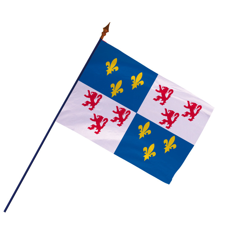 Le drapeau de la province picarde est issu des armoiries locales du XVIIème siècle. “Écartelé au premier et au quatrième d'azur aux trois fleurs de lys d'or ; au deuxième et au troisième d'argent aux trois lionceaux de gueules.” Fréquemment utilisé lors d’évènements culturels ou officiels, ce drapeau est parfait pour pavoiser vos façades comme pour décorer les espaces intérieurs.
