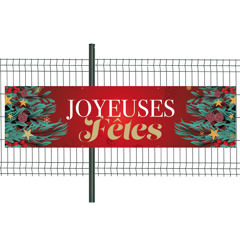 Banderole PVC à oeillets 80x300 cm - “Joyeuses fêtes” Modèle 2
