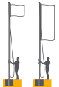 Le mât doit être extrait de son fourreau pour être alors couché par terre. Lorsque le nouveau pavillon a été installé à la potence, le mât est repositionné à la verticale puis réintroduit dans son fourreau.