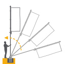 Le principe est le même que pour un mât à potence en aluminium, le mât doit être couché mais ici, la platine basculante permet de le faire pivoter sans devoir l’extraire de son étui. Cette manipulation est plus facile mais le mât ne peut être incliné que dans un seul axe.