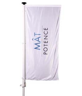 On appelle “mât avec potence”, un mât équipé d’une potence rotative positionnée perpendiculairement au mât. Le terme “rotative” indique que la potence est maintenue sur le mât grâce à un axe rotatif qui suit le souffle du vent sans lui opposer de résistance. La potence permet d’assurer une tenue et une tension optimale du drapeau même sans vent. Le changement du drapeau s'effectue par la dépose du mât au sol.