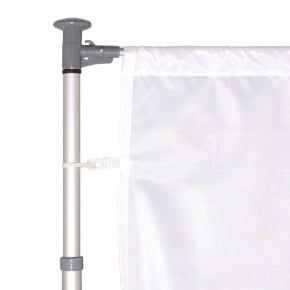 Sur les drapeaux de forme verticale, l’option d’une potence est disponible. Cette barre est fixée de manière perpendiculaire au support vertical qui la porte. Grâce à cette dernière, le drapeau est tenu sur une partie verticale et sur une partie horizontale pour lui assurer une tension parfaite même lorsqu’il n’y a pas de vent.