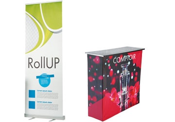 Découvrez tout l'univers des produits de communication personnalisés pour créer votre stand salon. Un agencement sur mesure entièrement imprimé à vos couleurs est décliné dans une gamme de produits PLV expo complémentaires, transportables et robustes. Des plus connus comme les best sellers, le Roll'up, Stand parapluie, comptoir au plus design avec le Cadre toile tendue rétro-éclairé, tous sont fabriqués à des prix économiques dès le premier exemplaire.