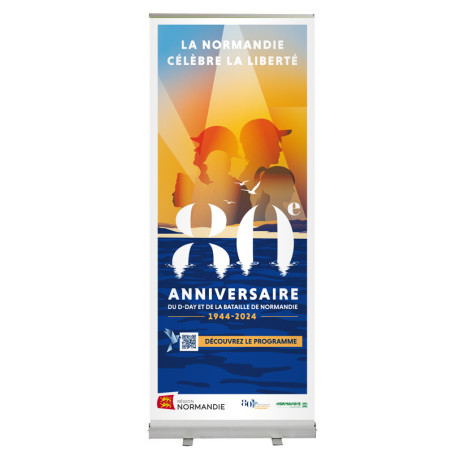 Célébrez le 80ème anniversaire du débarquement en Normandie avec notre roll'up exclusif, conçu pour capturer l'esprit et l'émotion de cet événement historique majeur. Notre roll'up offre une combinaison unique de qualité visuelle, de commodité et d'hommage historique.
