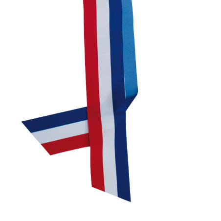 Votre écharpe tricolore spéciale Jeune élu(e) est fabriquée en ruban tricolore, matière de haute qualité. Confectionnée sans frange, ni coulant votre écharpe Jeunes élus est disponible en format standard 160 x 10 cm.