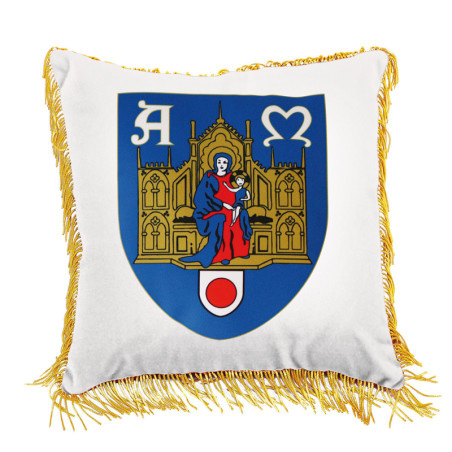 Ce coussin officiel personnalisé de trés haute qualité est fabriqué dans nos ateliers dans une dimension 35 x 35 cm. Son procédé de conception, l'impression numérique, vous permet d'avoir une personnalisation unique sur la totalité de la surface visible du coussin, sans limite de créativité. Le coussin imprimé est confectionné en tissu adapté de grande qualité, le polydéco. Un large choix de finition du pourtour du coussin est proposé : une frange bouillon ou filée et sans frange. Les coussins personnalisés pour vos événements sont fabriqués à la main dans nos ateliers pour vous garantir une qualité certifiée et reconnue.