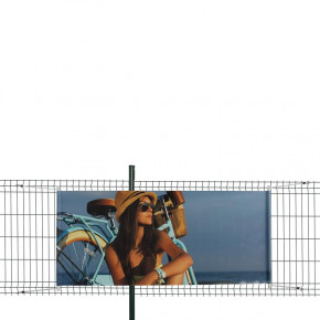 Sa mise en place avec crochets et sandows confère une surface parfaitement plane à la banderole publicitaire. La bâche enduite permet une impression en haute définition.