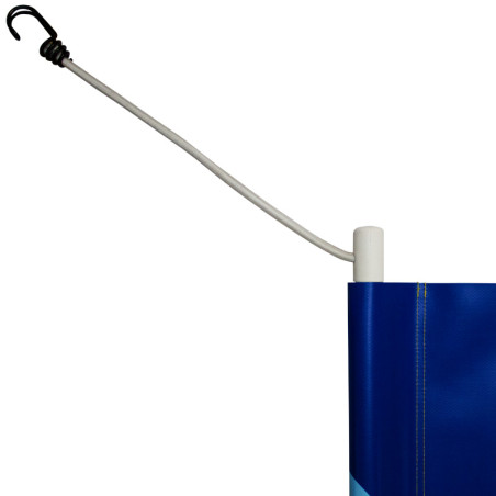 Le système d’accroche par tourillons en plastique et sandows élastiques à crochets permet de maintenir la bâche avec une tension optimale. Le changement de position de votre bâche est facilité par le système des crochets.