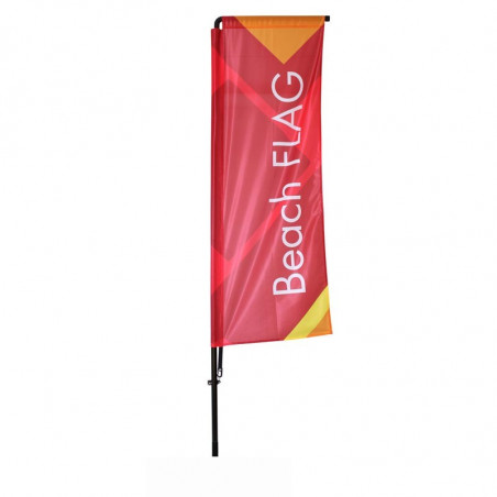 | La forme rectangulaire du beach flag potence apporte une visibilité maximale. Grâce sa large surface, ce format permet d'afficher des visuels plus grands et lisibles de loin, offrant ainsi un impact publicitaire plus fort |