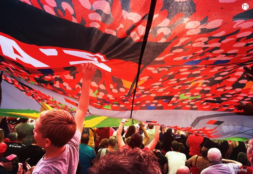 Lorsqu’on pense au drapeau de supporter, survient immédiatement dans notre imaginaire, l’image d’une foule de supporters dans les gradins qui agite des drapeaux aux couleurs de leur équipe. le saviez-vous, on appelle le drapeau de supporter un drapeau tifosi ou un “tifo”.
