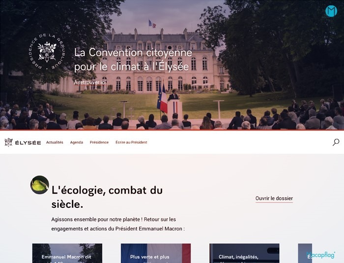 Le site internet de l’Elysée suit cette même mouvance puisqu’il a également été totalement repensé. Épuré, efficace, il laisse la part belle aux photos, notamment des nombreuses salles de l’Elysée redécorées. Comme indiqué lors de la campagne électorale d’Emmanuel Macron, le rôle de la première dame est affirmé et transparent, photos et agenda à l’appui.
