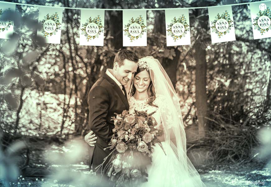 Plusieurs produits de communication personnalisables vous permettent de faire ressortir le caractère festif de votre mariage. À titre d’exemple, les guirlandes de fanions personnalisés peuvent être suspendues, en intérieur comme en intérieur. Des petits drapeaux en papier à agiter peuvent aussi être distribués aux invités pour la sortie de la mairie, de l’église, ou pour la soirée.