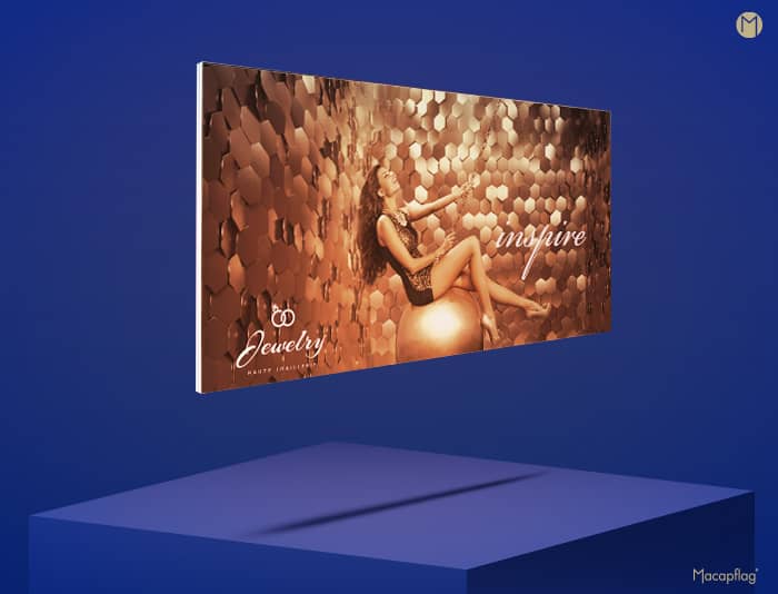 Ce produit composé d’un cadre en aluminium qui tient et tend un visuel textile imprimé se décline sous de multiples formes (carrée ou rectangulaire), version classique ou rétro éclairée, sur pieds ou à suspendre au mur… Chaque modèle est disponible en plusieurs dimensions standards ou sur mesure.