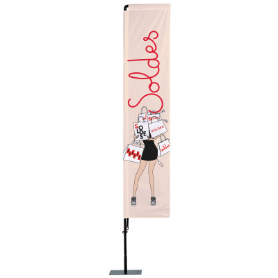 Parmi la sélection de produits, on retrouve les différentes formes du beachflag oriflamme qui se positionne aussi en bien en intérieur qu’en extérieur, tout comme la banderole imprimée en bâche ou en tissu. Le roll’up figure également dans cette sélection des best-sellers de la PLV. Il est lui dédié à un usage indoor.