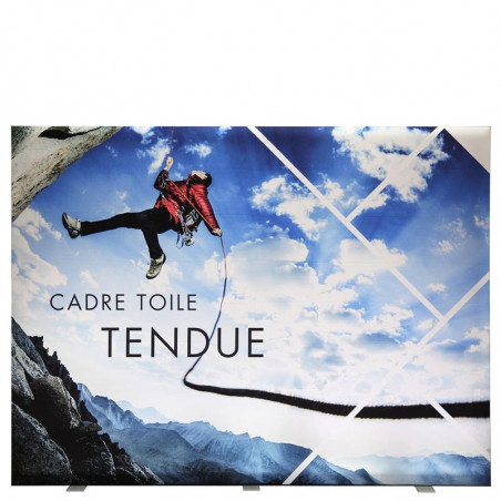 Ce kit complet de la gamme Cadre-Toile tendue est composé d'une structure en aluminium et des ses tissus imprimés. Ce cadre en aluminium démontable et sur mesure reçoit un textile imprimé entièrement personnalisable sur une ou sur ses deux faces. Sur le pourtour du textile est cousu un jonc qui se glisse dans la rainure du cadre en aluminium. Ce dispositif garantit une toile tendue pour une communication de qualité. Le cadre est aisément mis en place et déplaçable grâce à son système de pieds autoportants. Vous pouvez ainsi créer un espace de communication original et dynamique.