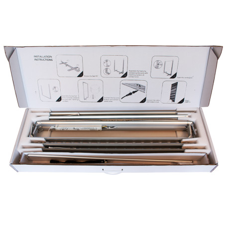 Le montage du cadre rétro éclairé est effectué en moins de 10 minutes par une seule personne pour le cadre 200 cm x100 cm. Pour le cadre de taille supérieure (230 cm x 200 cm), la participation de deux personnes est conseillée pour monter le cadre en si peu de temps.
