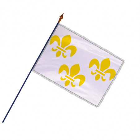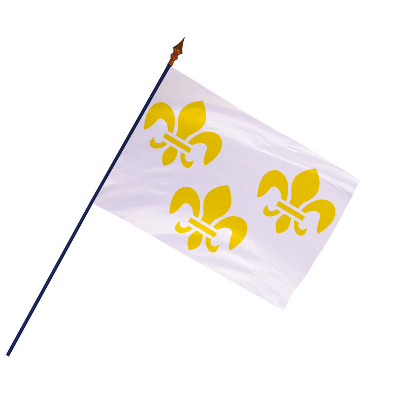 Les fleurs de lys évoquent naturellement la royauté française puisqu’elles étaient l’un de ses signes puissants. La fleur de lys est le symbole de la soumission du Souverain à l'autorité divine, justifiant ainsi son règne et son pouvoir "de droit divin". Les 3 fleurs de lys sont représentées par 3 comme la Sainte Trinité (Le père, le fils, le Saint-Esprit) et comme les 3 vertus théologales (La foi, l’espérance et la charité).Ce drapeau pour hampe est vendu en plusieurs dimensions avec plusieurs déclinaisons de matières et finitions possibles. Il est fixé sur une hampe en bois gainée de plastique bleu idéalement conçue pour agiter votre drapeau.
