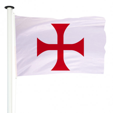 Les templiers sont représentés par leur croix. La croix des templiers, la croix de vermeille ou encore la croix de gueules est une croix de couleur rouge aux bras étroits près du centre et plus larges sur les extérieurs. Elle est représentée ici sur un drapeau blanc.Ce drapeau est fabriqué pour être hissé sur un mât. Il est imprimé sur des matières spécialement conçues pour la fabrication des drapeaux alliant qualité robustesse et esthétisme. Un ourlet est cousu sur le pourtour ainsi qu’une sangle de renfort sur le côté avec deux anneaux de fixation.
