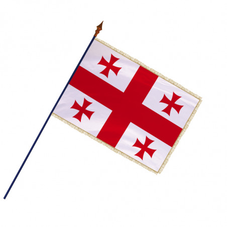 Un grande croix rouge traverse toute la surface du drapeau et dans les quatre zones blanches sont imprimées les croix des templiers.Le drapeau est vendu en plusieurs dimensions et plusieurs options de personnalisation sont mises à votre disposition : choix des spécificités de la maille à drapeaux et choix des finitions, ourlet, galon ou frange dorée et argentée.