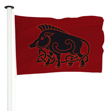 Ce drapeau gaulois pour mât est un drapeau couleur rouge sang sur lequel figure un sanglier de couleur noire.Le drapeau est disponible en plusieurs dimensions standards. Les tailles sont calculées pour convenir idéalement aux différentes hauteurs de mâts. Cependant, en tant que fabricant français, nous vous offrons également la possibilité d’acheter ce drapeau en version sur-mesure.