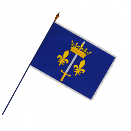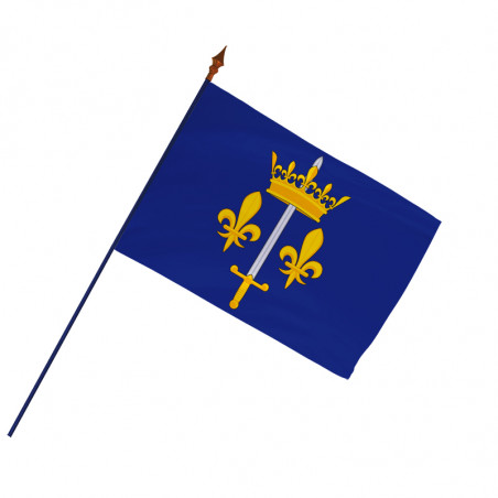 Les armoiries de la Pucelle d’Orléans sont mondialement connues comme les symboles de courage et de liberté de Jeanne d’Arc. L’épée, la couronne et les fleurs de lys représentent cette héroïne attachée à la liberté. Elles sont de couleur or sur un fond bleu, dans la pure tradition héraldique française.Le drapeau est vendu en plusieurs dimensions et plusieurs options de personnalisation vous sont proposées : choix des spécificités de la maille à drapeaux et choix des finitions, ourlet, galon ou frange dorée et argentée.