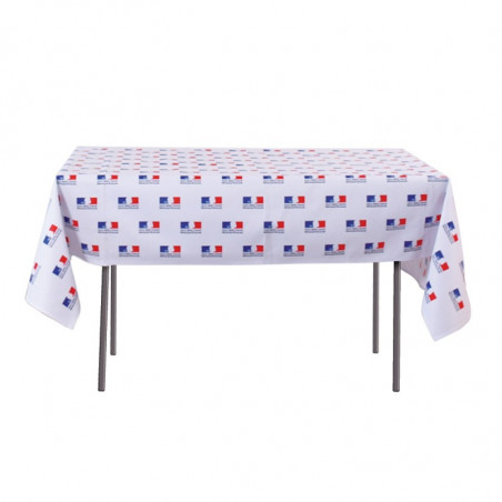 Présentée ici dans sa version officielle aux couleurs bleu-blanc-rouge, la nappe existe également en version 100% personnalisée aux couleurs de votre évènement ou de votre entreprise. Elle reste un support de communication incontournable qui permet de parfaire l’aménagement d’un lieu de réception comme peut le faire un display roll up.