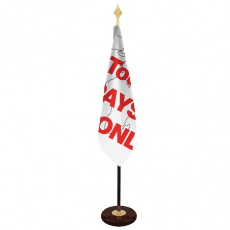 Ces drapeaux sont imprimés sur un textile de haute qualité, le Polydéco, qui confère au support un aspect très qualitatif et un rendu remarquable. Plusieurs options de finition sont possibles, galons, franges, or ou argent. La hampe en bois précieux est démontable, elle est surmontée d'une flamme en laiton et disponible en deux longueurs pour la décoration et l'ornement. Pour les défilés, la hampe mesure 246,5 cm. Un choix de hampe en bois bleue est également disponible pour présenter vos drapeaux.