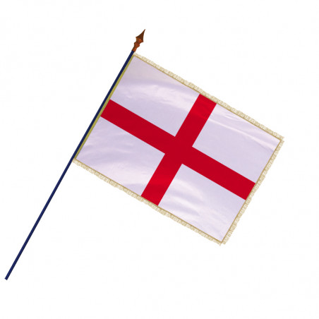 Le drapeau de l'Angleterre, présenté avec sa hampe officielle, est composé d’une croix rouge sur un fond blanc. Cette croix est celle de Saint Georges, le saint patron de l’Angleterre qui fut arboré dès le XII siècle. Le drapeau Anglais, officialisé au XVIII siècle, ne doit pas être confondu avec le drapeau du Royaume-Uni, le fameux « Union Jack » qui symbolise l'union de l’Angleterre, l’Ecosse et le Pays de Galles.