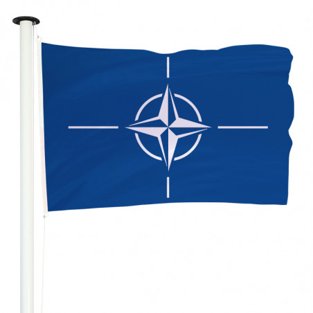 Le drapeau officiel de l’Organisation du Traité de l'Atlantique Nord arbore une boussole blanche sur un fond bleu foncé, symbolisant l'océan Atlantique. Le cercle représente l'unité, tandis que la boussole illustre la quête de paix des états membres. Ce pavillon, fabriqué en maille de drapeau en textile polyester (classique, longue durée ou recyclé) est disponible en plusieurs tailles. Son pourtour est confectionné avec un ourlet avec un libre choix de montage pour être facilement hissé sur un mât.