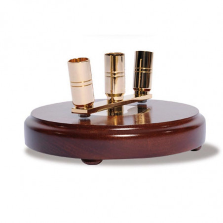 Ce socle en bois verni d’un diamètre de 29 cm et son manchon en laiton doré est proposé en trois versions pour accueillir 1, 2 ou 3 drapeaux. Le diamètre de la hampe reste identique : 32 mm.