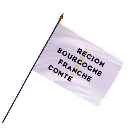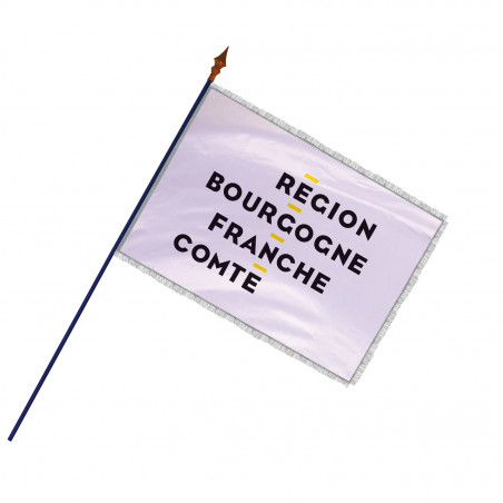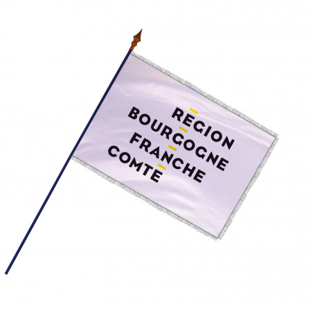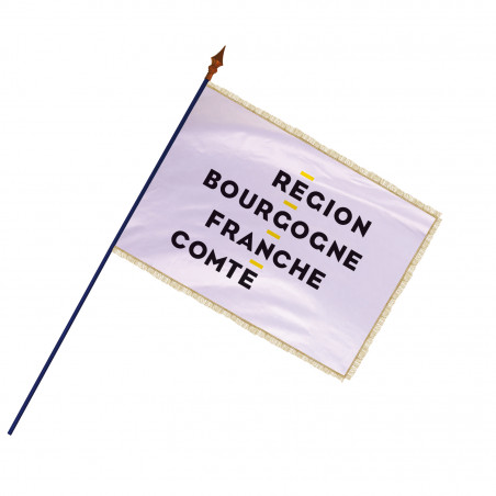Le drapeau officiel de la Région Bourgogne-Franche-Comté est décliné dans une large gamme de drapeaux. Equipés d'une hampe en bois gainée de plastique bleu et surmontées d'une flamme plastique teintée bronze, les drapeaux sont imprimés dans des matières de haute qualité.