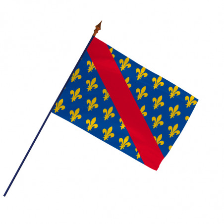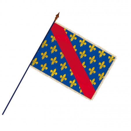 Fleurs de lys d'or, fond bleu azur et bande de gueules rouge, tels sont les armoiries que l'on retrouve sur le drapeau de la province du Bourbonnais. Imprimé dans nos ateliers, la qualité de sa production assure un bon usage pour vos cérémonies et événements officiels. Léger, robuste et sécurisé (flèche en plastique), le drapeau est fabriqué dans une gamme étendue.