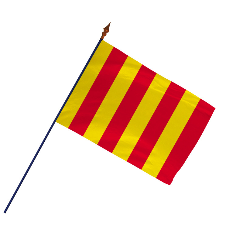 Le drapeau de la province du Roussillon appartient à la famille des drapeaux d’influence catalane que l’on retrouve en Provence ou encore dans le comté de Foix. Les fameuses bandes rouges sur fond jaune du drapeau sont ici imprimées sur de la maille à drapeaux spécialement résistante aux expositions en extérieur. Décliné en plusieurs dimensions, ce drapeau pour hampe est parfait pour le pavoisement de vos façades mais aussi pour la décoration de vos intérieurs et vos cérémonies.