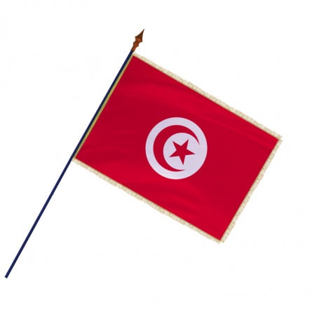 • Drapeau Tunisie avec frange doré et fixé sur sa hampe (Officiel)