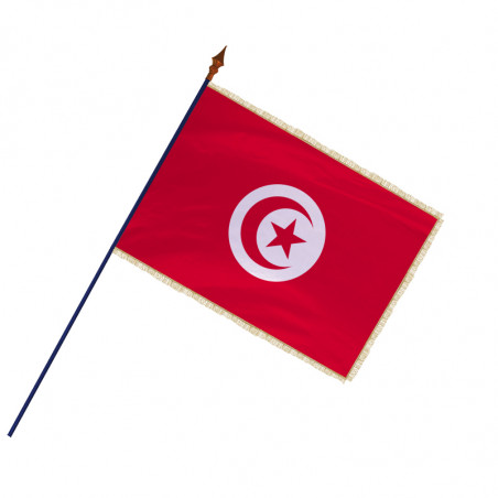 • Drapeau Tunisie avec frange argenté et fixé sur sa hampe (Officiel)