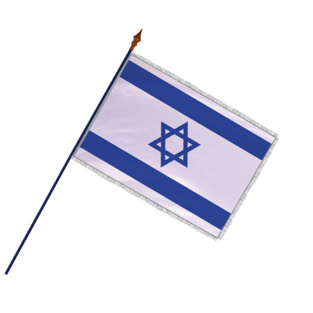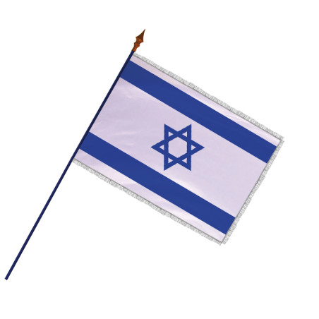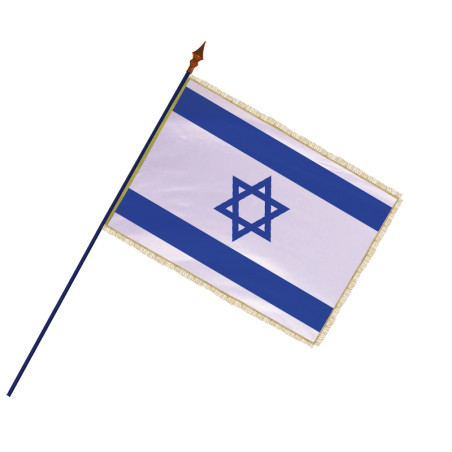 Fabriqué dans nos ateliers, le drapeau d'Israël est imprimé en plusieurs dimensions et matières. Chaque modèle standard est fini avec un ourlet robuste, et des options de personnalisation sont disponibles. Le tissu est fixé avec des agrafes sur une hampe officielle en bois gainée bleue, surmontée d'une flamme couleur bronze en plastique.