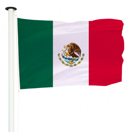 Le drapeau officiel mexicain pour mât est proposé en différentes tailles avec plusieurs possibilités de montage et de finitions pour correspondre parfaitement au mât qui le porte. Il est fabriqué en France et livré chez vous paré à être hissé sur son mât.