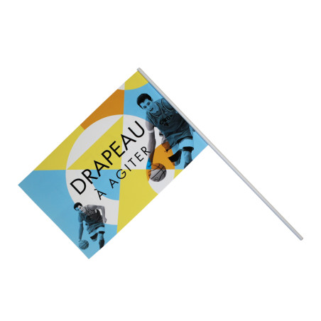 Le drapeau événementiel à agiter appartient à la catégorie de drapeau personnalisé. Avec sa hampe collée, il est disponible à partir d’une quantité de 1000. Il est possible de différencier l’impression sur les 2 faces. Le drapeau publicitaire est disponible en 4 formats standardisés pour une utilisation intérieure et extérieure. C’est le drapeau de supporters et des grands événements.