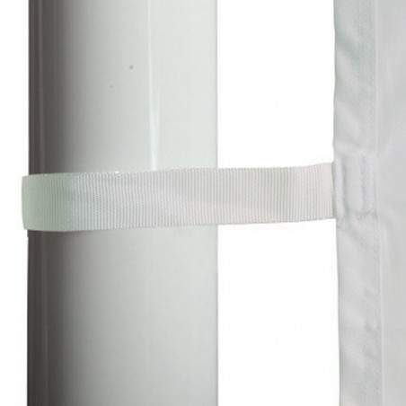 Le montage avec une sangle de renfort et ses anneaux haut et bas permet de fixer le pavillon à son mât.