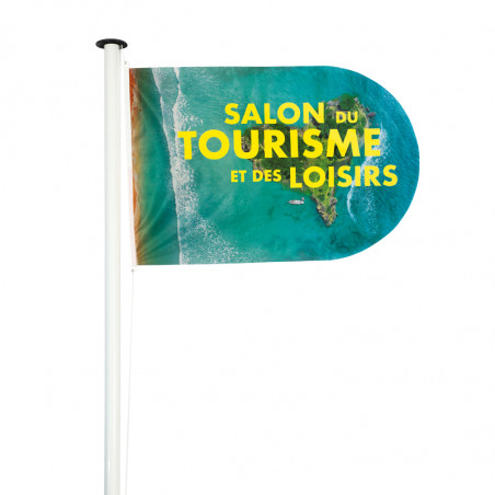 Commandez votre drapeau personnalisé avec sa forme arrondie pour votre mât classique !