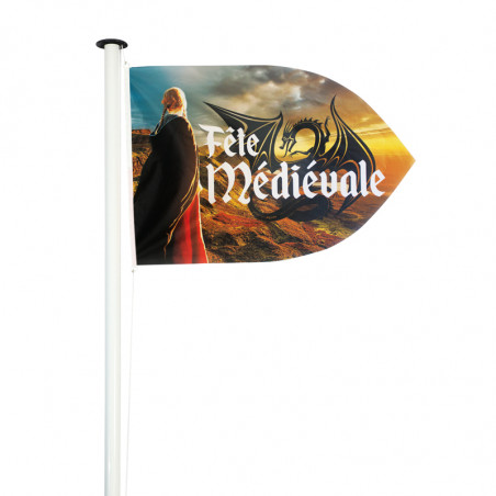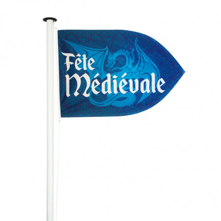| Le pavillon de forme Ecu rappelle les motifs médiévaux, évoquant les bannières des châteaux. Son design accrocheur attire l’attention tout en ajoutant une touche historique à votre communication visuelle |