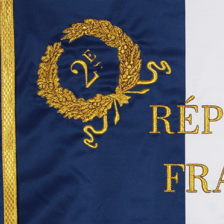 Impression tricolore sur la matière polydéco au rendu remarquable, ce drapeau de cérémonie est sublimé par une broderie personnalisée (logo, symbole, texte...). Entièrement fabriqué dans nos ateliers en France et certifiés ISO 9001, 14001 et 45001, il allie la modernité de l’impression à la précision d’un travail de confection haut de gamme. Personnalisable sur une ou deux faces, le drapeau défilé est fixé sur une hampe en bois exotique et proposé avec des finitions sur mesure de grande qualité pour répondre à toutes vos exigences officielles.